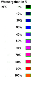 Zur Flächensimulation durchläuft obiges Modell zu jedem Zeitschritt jedes Pixel der Bodenkarte mit den aktuellen Bodenfeuchten und resultiert in folgender Kartenanimation. Für jede Bodenart ergeben sich somit unterschiedliche Verdunstungsraten, wie den Funktionsverläufen oben dargestellt.